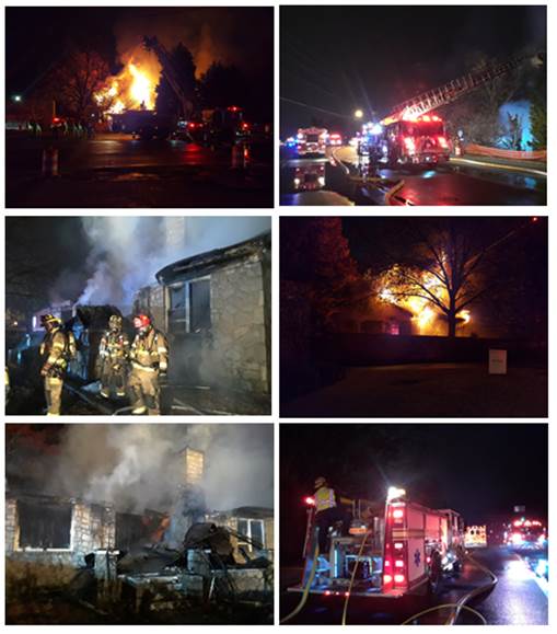 EQUIPMENT AT THE SCENE INCLUDED: 4-Engines, 2-Ladder Trucks, 1-Squad, 1-Medic Unit, 1-Air & Light Unit, 1-Rehab Unit, 1- Medical Supervisor, 2-Battalion Chiefs, 1-Distict Commander, 1-Fire Investigator and 1 -PIO