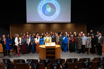 Gwinnett 101 class members attend a graduation ceremony and receive certificates at the completion of each Academy session. Graduates are recognized by the Gwinnett County Board of Commissioners during a public hearing.