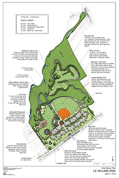 Development of existing park land with soccer complex, trails, picnic areas, and playgrounds