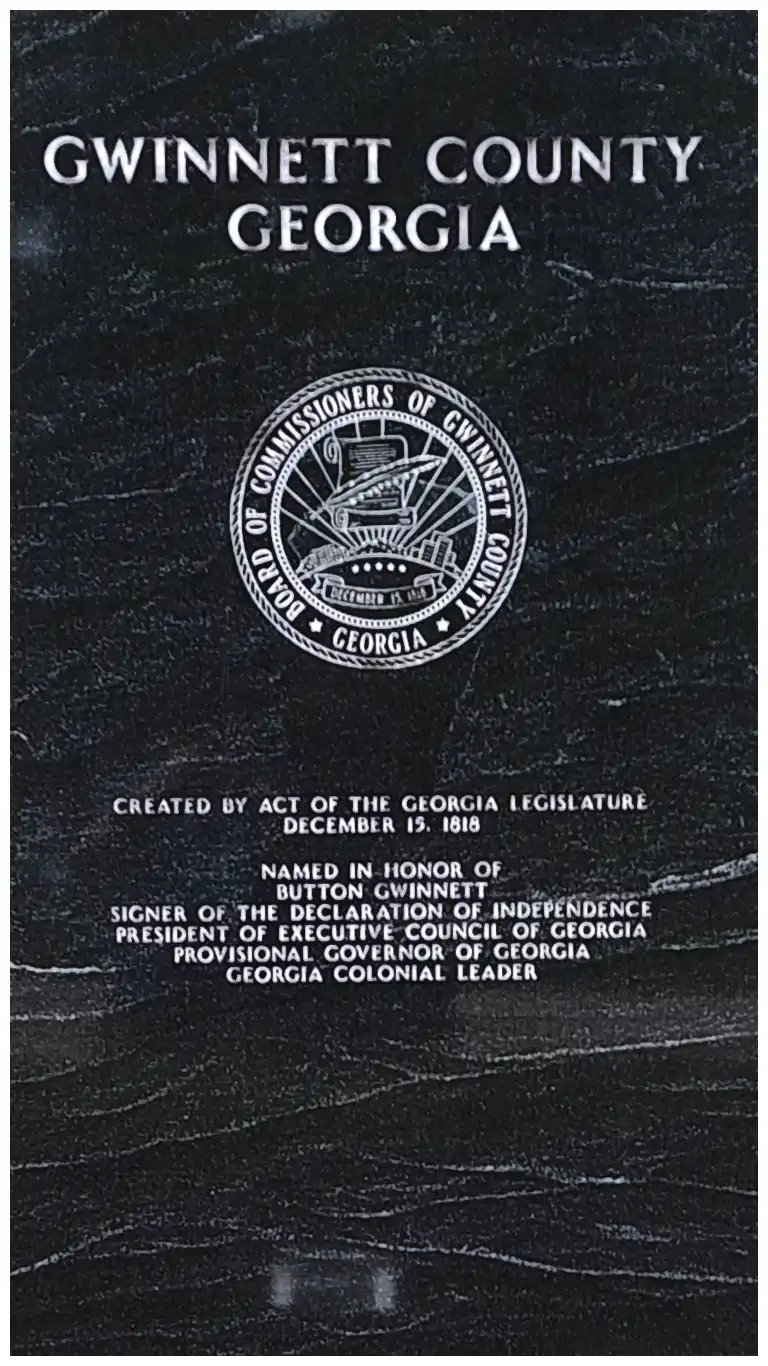 Gwinnett County was established by an act of the Georgia Legislature on December 15, 1818, and named in honor of Button Gwinnett, one of the three Georgia signers of the Declaration of Independence. Button also served as the President of Executive Council of Georgia, Provisional Governor of Georgia, and Georgia Colonial Leader.