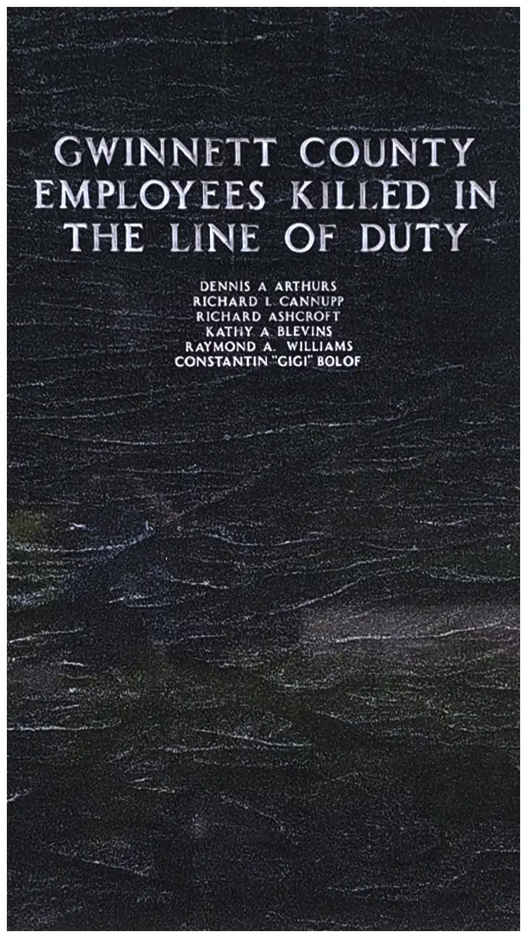 This memorial stands as a dedication to the Gwinnett County employees killed in the line of duty. These employees epitomized the Gwinnett Standard, which is an expectation of excellence in service, stewardship, and integrity in everything we do. As we honor their memory, we express our deepest gratitude for their sacrifice and pledge to remember their contributions and the profound impact they had on our lives.