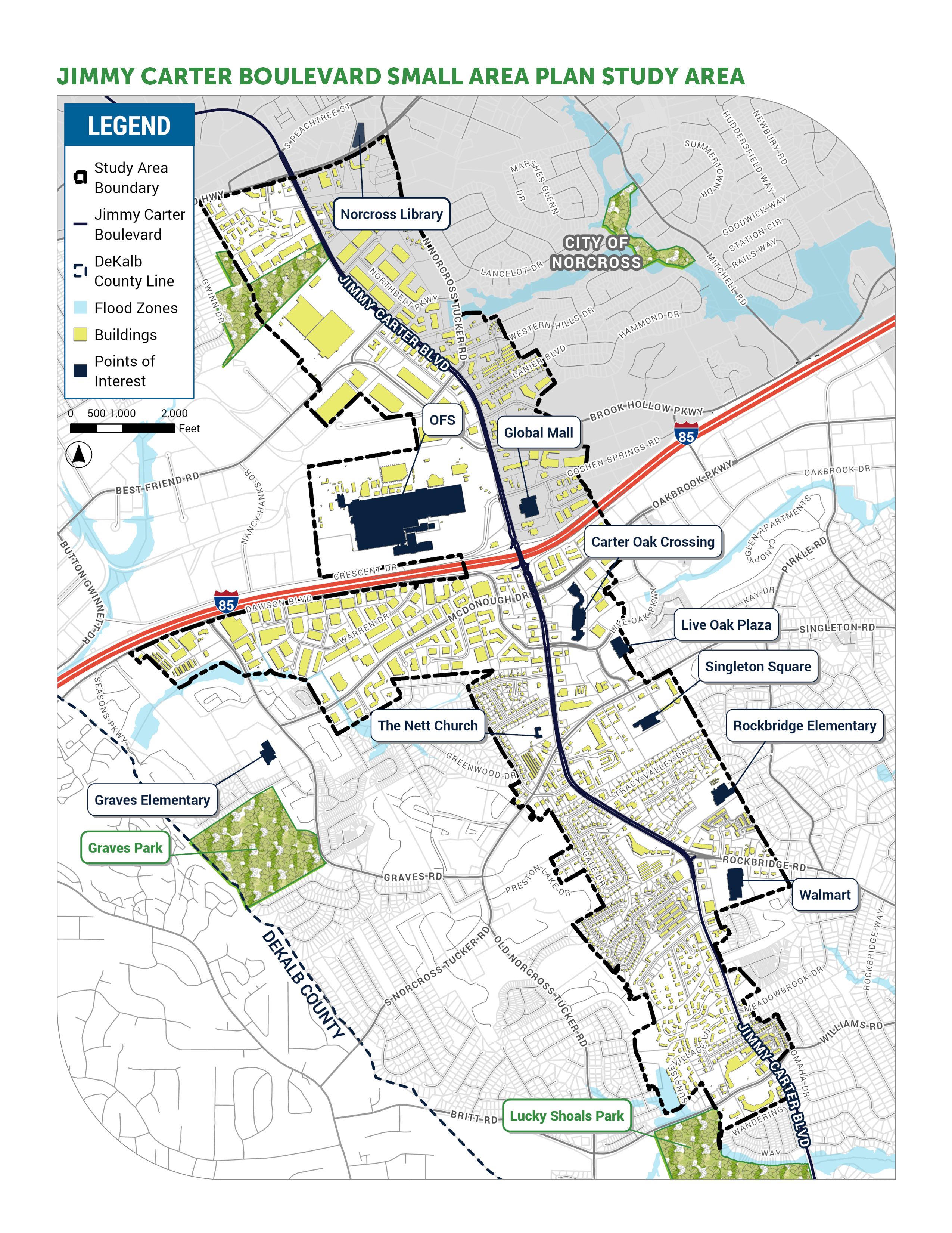 The Jimmy Carter Boulevard Small Area Plan will shape the future of this corridor for the next 20 years. Funded through the Atlanta Regional Commission’s Livable Centers Initiative program with matching funds provided by Gwinnett County, the Jimmy Carter Boulevard Small Area Plan will guide future development policies and infrastructure investments, fostering vibrant communities that attract residents, visitors, and unique experiences.