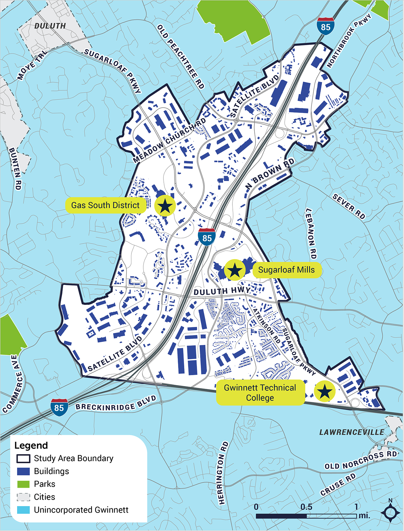 The Sugarloaf Small Area Plan will shape the future of this area for the next 20 years. A joint planning process led by Gwinnett County and the Sugarloaf Community Improvement District, the Sugarloaf Small Area Plan will guide future development policies and infrastructure investments, fostering a vibrant community that attracts residents and visitors, supports business, and provides unique experiences.