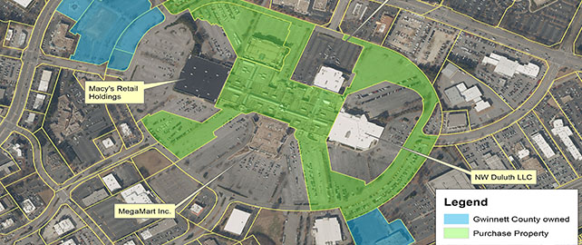 The purchase is part of an effort by the County government, the Gwinnett Place Community Improvement District and local property owners to create new opportunities to serve as a catalyst for redevelopment in the area.