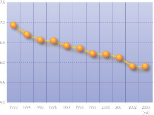 As evidenced by this graph, the ratio of county employees to population has decreased over the last 10 years