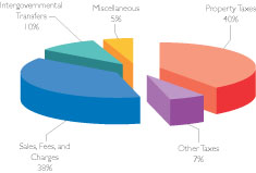 Taxes account for less than half of the county's total operating revenue