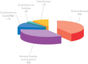 Personal services (employees salaries and fringe benefits) account for only 39% of the County's total operating appropriation budget